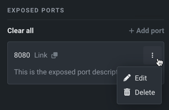 Click Delete to remove the exposed port, ending session forwarding to that port.