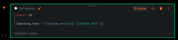 Once defined, you can use this parameter in code by retrieving the corresponding environment variable, as shown below.