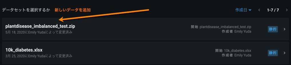 - 動的データとして作成:DataRobotは、将来のモデリングおよび予測アクティビティのためにデータを更新します。