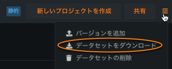 データセットをダウンロードするには、カタログリストからデータセットを選択します。 右上のドロップダウンメニューから、データセットをダウンロード(