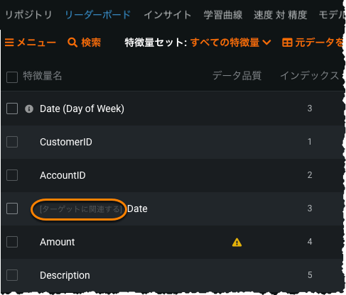 | ターゲットに関連する | 列はターゲット列から派生しています。 |