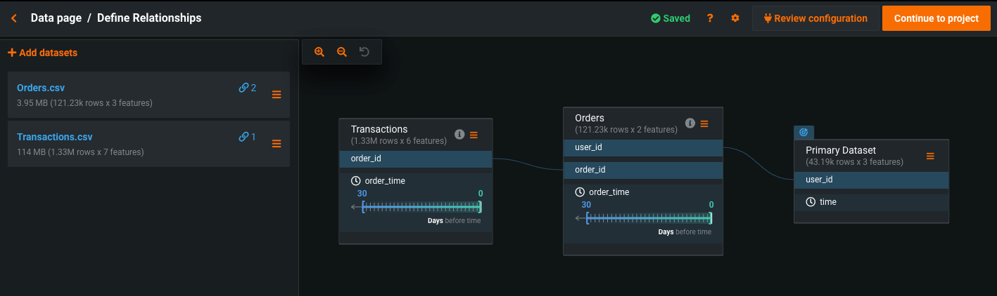 特徴量探索では、データセットを結合および集計する手順を自動化することで、この問題を解決します。 データセットの結合方法を定義した後、特徴量の生成とモデリングをDataRobotに任せます。