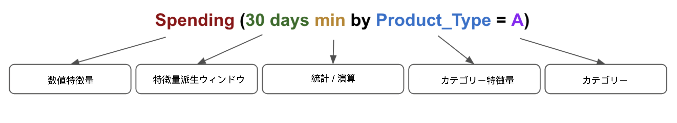 - Spending(Product_タイプ = Aで最小30日)