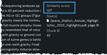 TLDR:引用に表示される類似度スコアは、ベクトル検索時にバイナリインデックスによって返されるハミング距離に基づいており、ユーザークエリーの浮動小数点埋め込みとのコサイン類似度で再スコアリングされ、小数点以下2桁に丸められます。