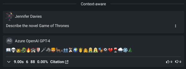 次の例では、3つのLLMブループリントを比較します。回答のスタイルに影響を与えるために別の システムプロンプトを使用することを除き、それぞれが同じ設定です。 LLMブループリントを設定する際、まずシステムプロンプトをテストします(Describe the novel Game of Thronesなど)。