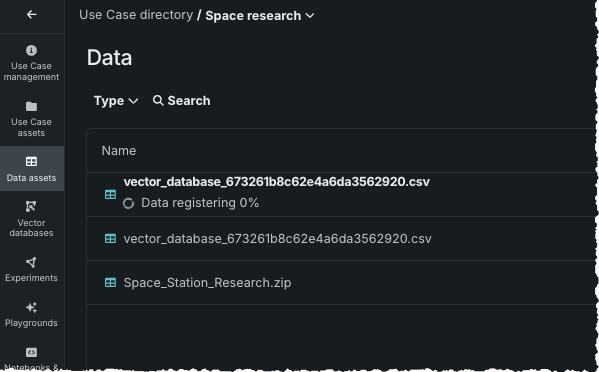 登録されると、データセットをプレビューしたり、このデータセットから新しいベクターデータベースを作成したりできます。