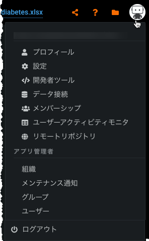プロフィール情報、2要素認証、開発者ツール、データソース、およびメンバーシップ割り当てにアクセスするには、DataRobotの右上にあるプロフィールアイコン(またはデフォルトのアバター )をクリックします。
