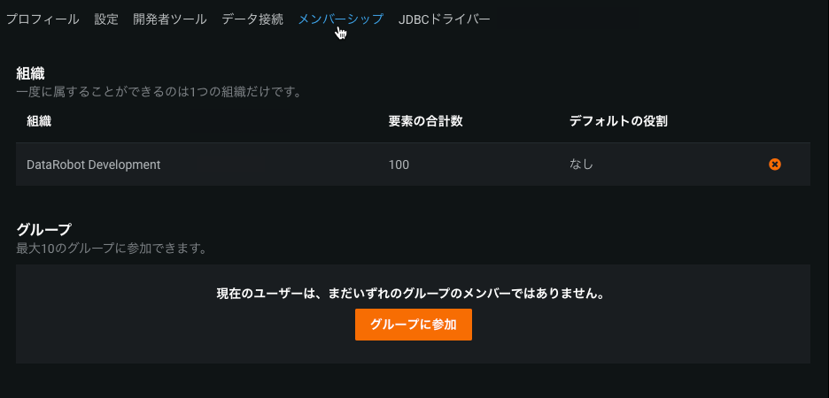メンバーシップページから、システム管理者から割り当てられている自分の組織およびグループを表示し、他のグループに参加できます。