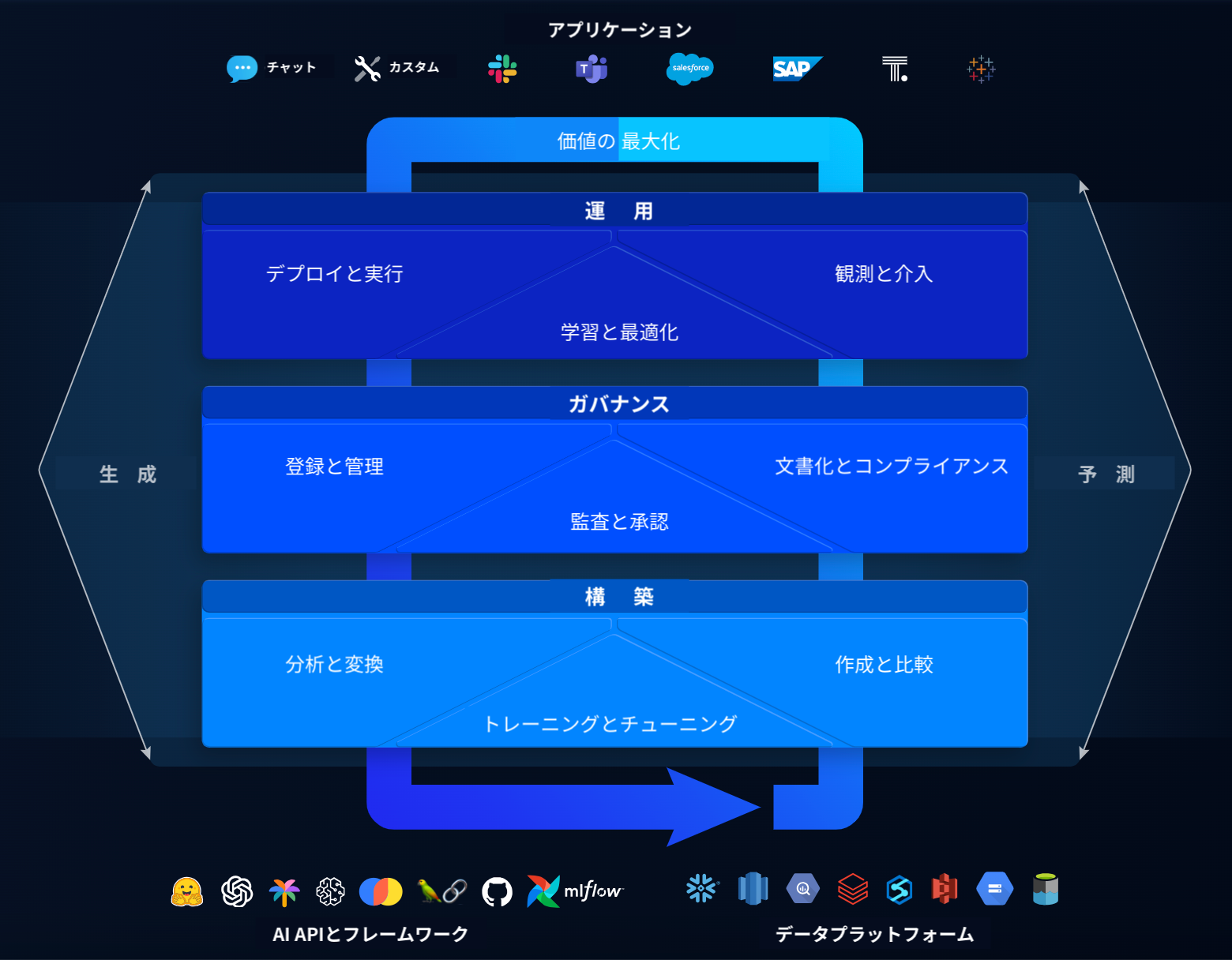 このアプリケーションは、AIのライフサイクルのステージ(構築、ガバナンス、運用)ごとに構成されています。
