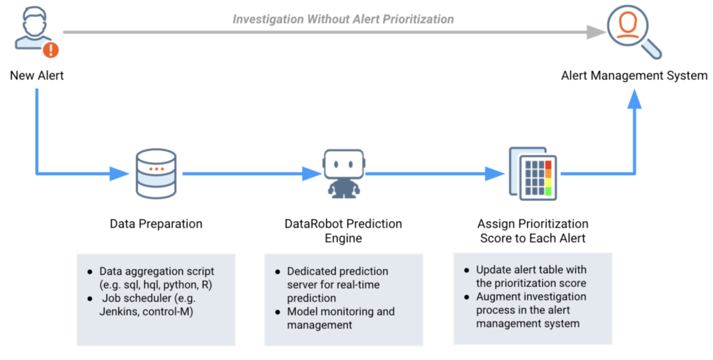 DataRobotで生成された予測をアラート管理システムと統合することで、調査チームはリスクの高い取引を把握できるようになります。
