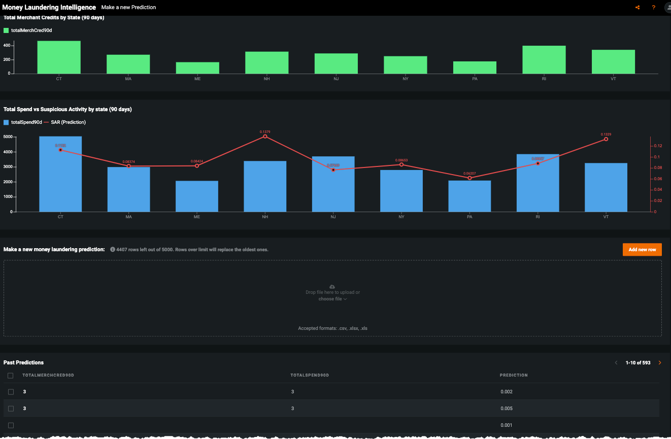 このユースケースでは、顧客情報や取引情報などの履歴データを使用するモデルを構築して、不審なアクティビティレポート(SAR)の原因となったアラートを特定します。 次に、このモデルを使用して、不審なアクティビティスコアを将来のアラートに割り当て、スコアによるランク付けを使用してAMLコンプライアンスプログラムの効率を向上させることができます。 このユースケースは、UI操作をベースにした基本ステップとして、以下で説明します。 また、 Jupyterノートブック としても提供しており、ダウンロードして実行することができます。
