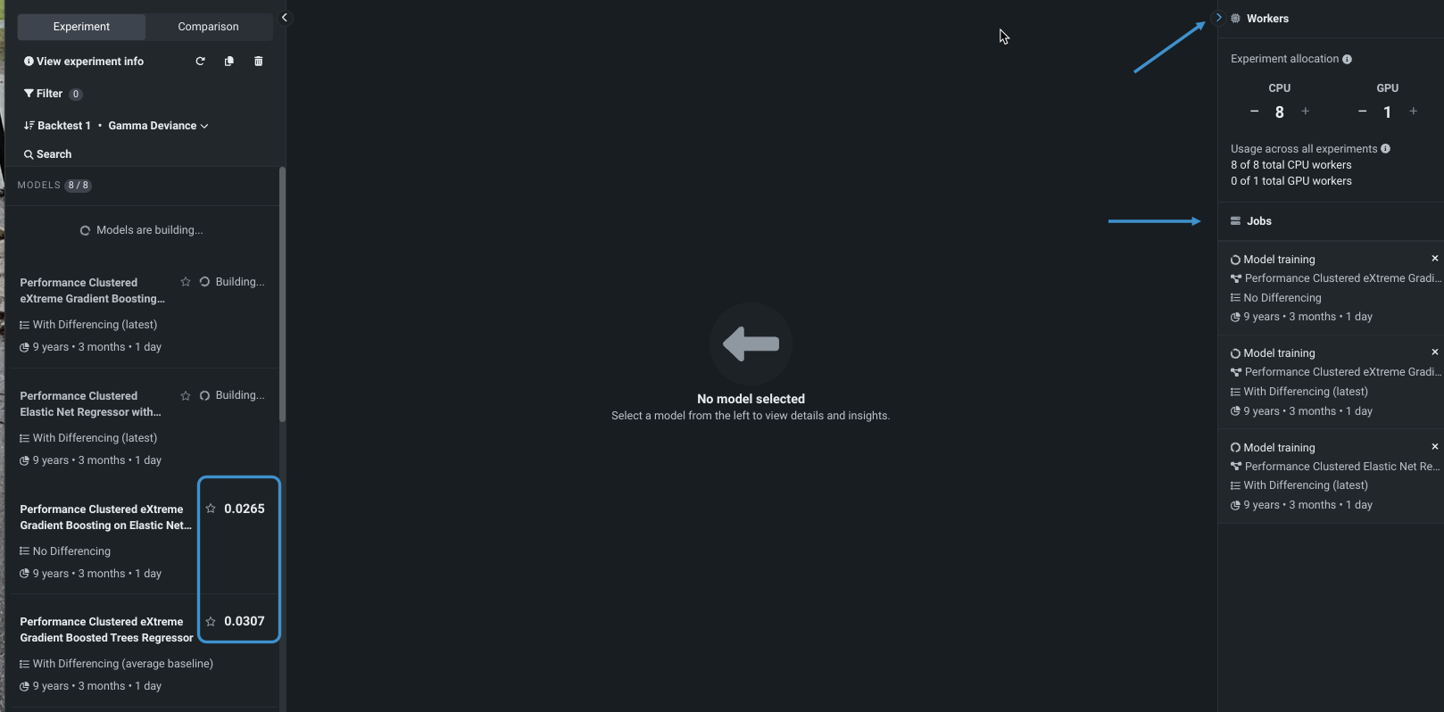 リーダーボードのスター付きモデルに戻り、計算を実行したインサイトを表示します。