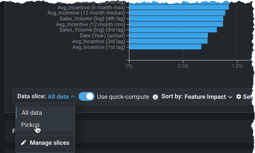 Pickupデータスライスで特定された特徴量だけを表示するように変更できますが、スライスを変更すると再計算が必要になります。 -
