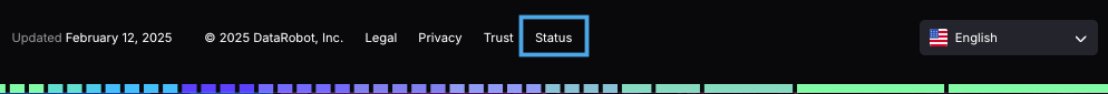 DataRobotは定期的にサービスメンテナンスを実行します。 ほとんどのメンテナンスは気付かれずに行われますが、一時的に影響が出る可能性があるものもあります。 ステータスページの告知では、サービスの停止、定期メンテナンス、および過去の稼働率に関する情報を提供します。 DataRobotステータスページから通知を表示および購読できます。