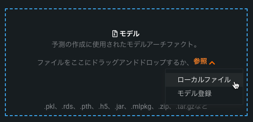 モデルの追加ヘッダーで、参照をクリックし、ローカルファイルをクリックしてモデルパッケージをアップロードします。 モデルパッケージファイルをモデルの追加ボックスにドラッグアンドドロップすることもできます。