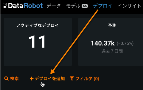 予測 > デプロイをクリックします。
