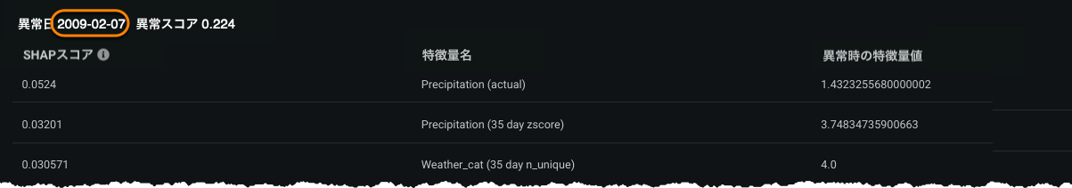 ポイントに異常がない場合、SHAPスコアは表示されません。