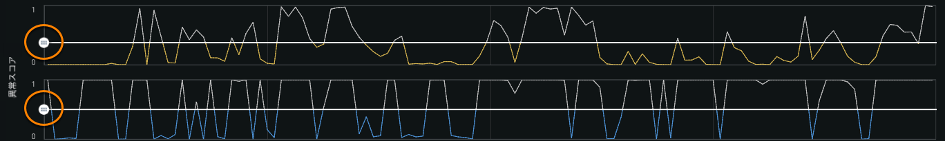 異常しきい値を制御するには、モデルごとにあるハンドルを上下にドラッグします。 同じプロジェクトでもしきい値はモデル間で異なります。このことは、正確な比較を行うために、2つのチャート間でしきい値が同じである必要はないことを意味します。