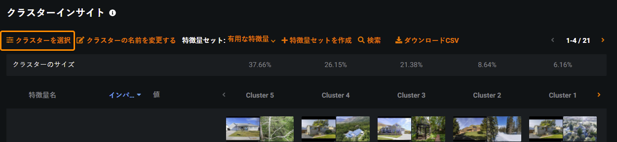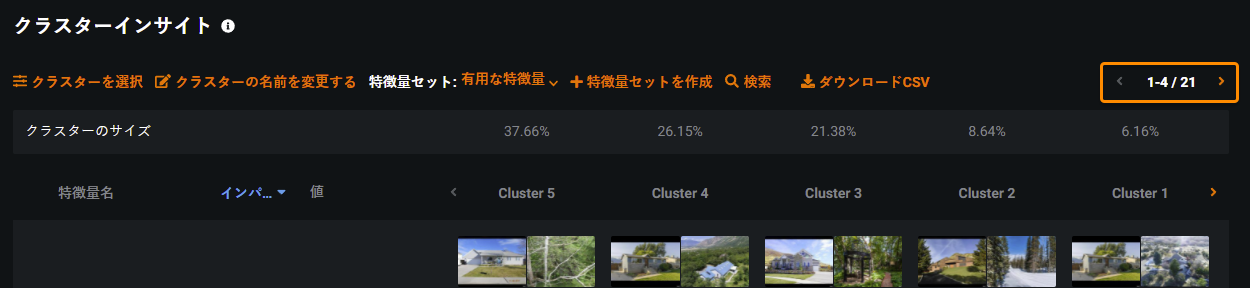 特徴量のページを移動するには、クラスターの上の右矢印をクリックします。