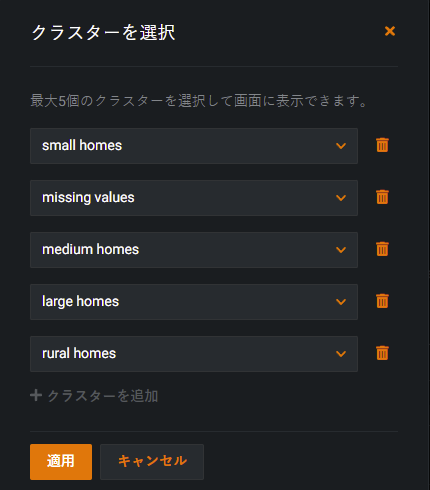 表示または削除するクラスターを選択するには、クラスターを選択をクリックします。