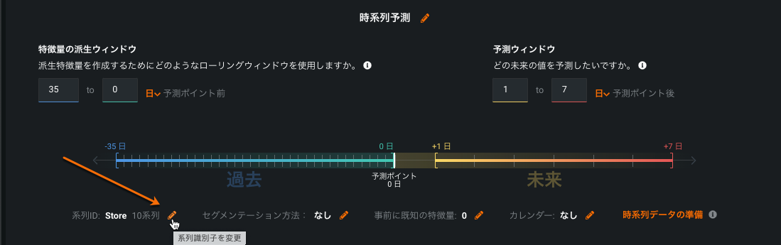 複数の時系列を使用を促すセグメントで、系列IDを設定をクリックします。