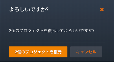 削除済みプロジェクトの管理ページにあるプロジェクトは復元可能です。