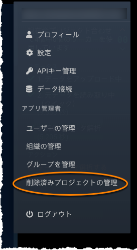 右上にあるプロファイルアイコンを展開し、削除済みプロジェクトの管理をクリックします。