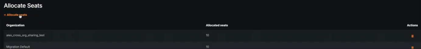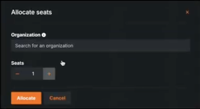 シートを割り当てるモーダルで、組織の名前を入力し、割り当てるシート数を指定します。