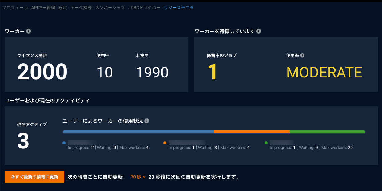 具体的には、リソースモニタでは、現在実行中のジョブの数、許可されている同時ジョブの数、およびワーカーを待機中のジョブの数を監視することができます。 さらに、このツールは、どの特定のユーザーがシステムリソースを使用しているかの情報を提供します。