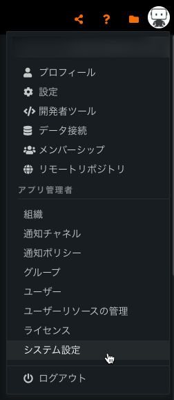 インターフェイスを操作するには、システムを設定ドロップダウンから選択します。