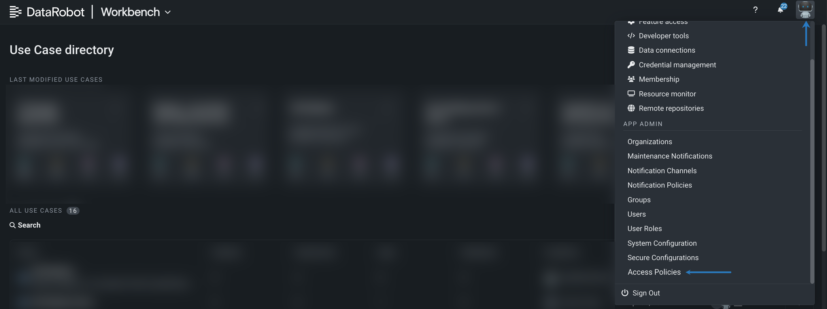 ユーザー設定を開き、管理者の下でアクセスポリシーを選択します。