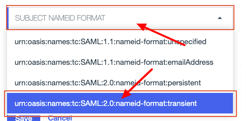 urn:oasis:names:tc:SAML:2.0:name-id:transientを選択します。