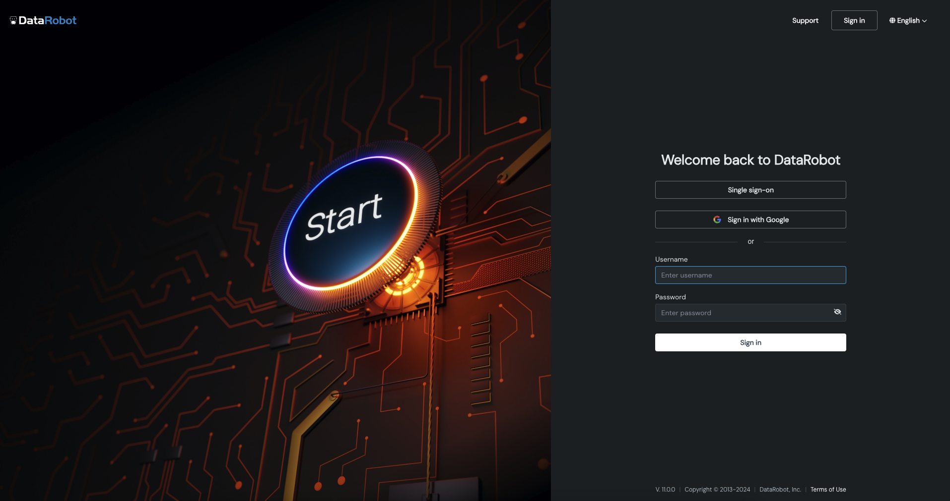 シングルサインオン(SSO)の利用の可否は、DataRobotパッケージによって異なります。 組織で有効化されていない場合は、DataRobotの担当者にお問い合わせください。