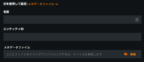 | メタデータファイル | インテグレーション固有の情報を含むXMLドキュメント(IdPが提供)。 これはIdPからメタデータURLが提供されなかった場合に使用します。 |