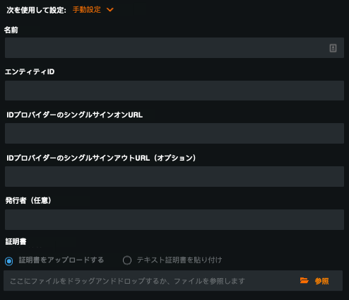 IdPメタデータがない場合は、手動設定を選択してください。
