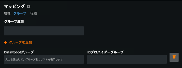 | DataRobotグループ | ユーザーを割り当てる既存のDataRobotグループの名前。 |