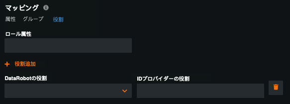 ロールのマッピングでは、IdPのロールとDataRobotのロールの間でマッピングを無制限に作成できます。 作成できるマッピングは、1対1、1対多、または多対多です。 マッピングされたロールのリストは、ログインプロセスが成功するたびにIdPから同期されます。 マップされていないグループは、DataRobotで一意のエンティティとして使用でき、ログインプロセス後も変更されません。
