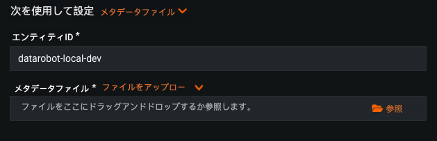 IdPを設定した後、組織のエンティティIDとIdPメタデータを設定して、DataRobotでSSOを設定する必要があります。 2つのエンティティIDがあります。1つはサービスプロバイダー(DataRobot)のIDで、もう1つはIdPのIDです。