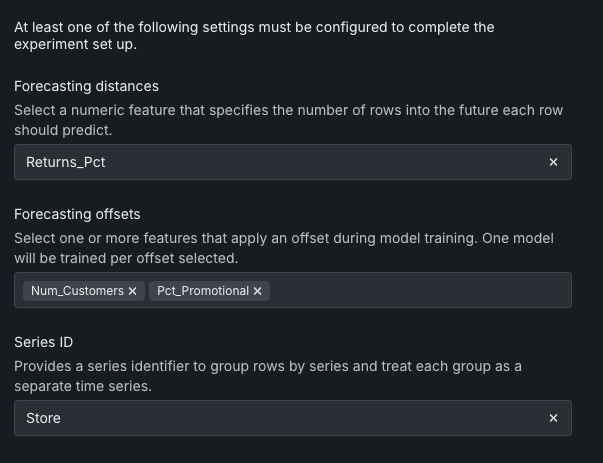 今回のデプロイでは、特徴量変換を用いた時間認識予測がワークベンチに導入されました。これにより、時間を認識したユースケースでは、10GBを超えるデータセットで特徴量エンジニアリングのメリットを活用できます。 この手法を時間認識ラングリングと組み合わせて使用すると、完全に透明な変換プロセスを実現できます。 予測距離に基づいて行を割り当て、予測を行う方法を設定するには、モデリングパラメーターを使用します。 それによって、DataRobotは各距離に別個のモデルを構築して、1行ずつ予測します。