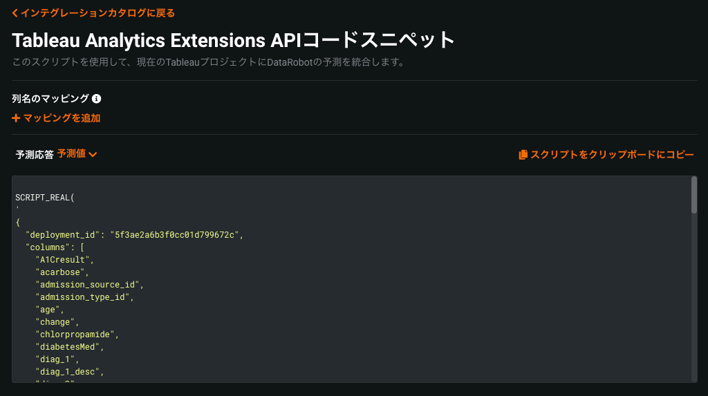 - Tableauの分析拡張機能をDataRobotデプロイと統合