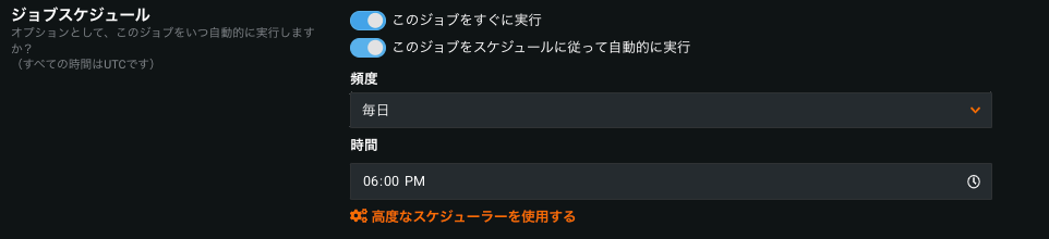 ジョブ定義タブで見つけて実行するのではなく、ジョブの説明を作成するときに、すぐにジョブ定義を保存して実行できるようになりました。