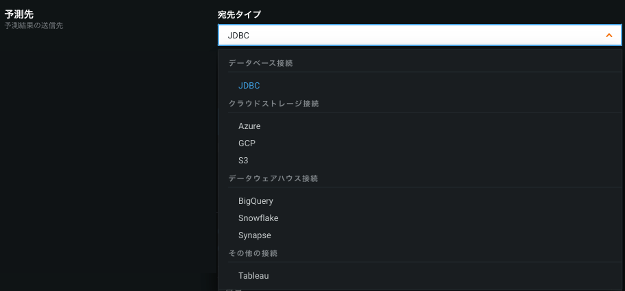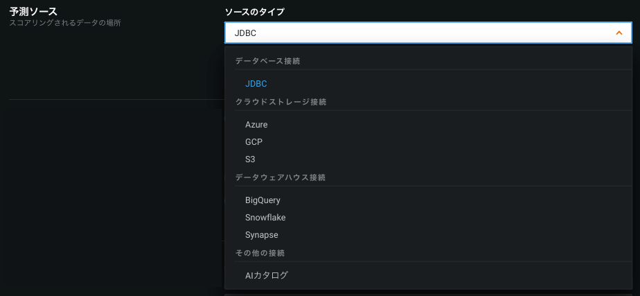 予測ジョブを作成するときに、デプロイページでBigQueryを予測ソースと予測先を選択できるようになりました。AIカタログを予測ソースとして選択することもできるようになりました。サポートされている予測ソースタイプと宛先タイプは以下の通りです。