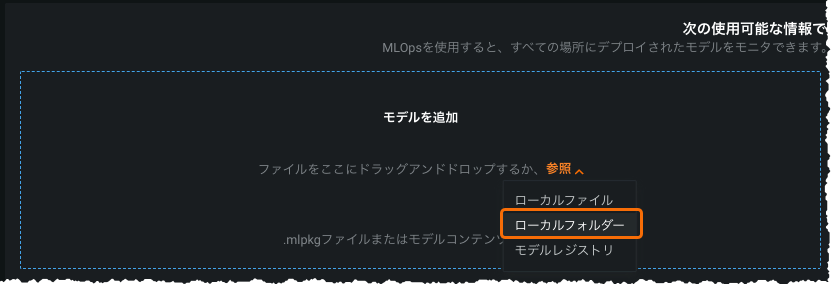 リリースv8.0(クラウドユーザー向けは2022年3月14日)では、デプロイインベントリを介してモデルを追加する場合に「ローカルフォルダー」オプションを使用する機能は使用非推奨になります。このリリースでは、まだ使用可能ですが、カスタムモデルワークショップを使用する方法が推奨されます。v8.0では、使用できるのはワークショップオプションのみです(インベントリページからリンクされます)。