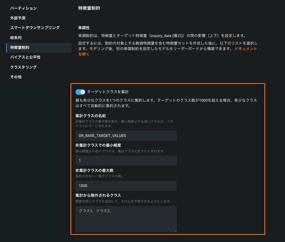 詳細については、特徴量のインパクトに関するドキュメントをご参照ください。