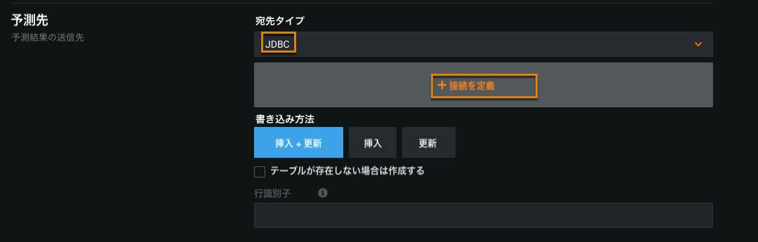 Prestoに予測データを書き込むことができるようになりました。これを行うには、PrestoをJDBCデータ接続として設定します。バッチ予測ジョブ定義(予測 > ジョブ定義)で、JDBCを予測先に選択します。