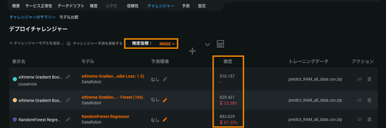 チャレンジャーの精度比較の詳細については、チャレンジャーモデルの概要を参照してください。