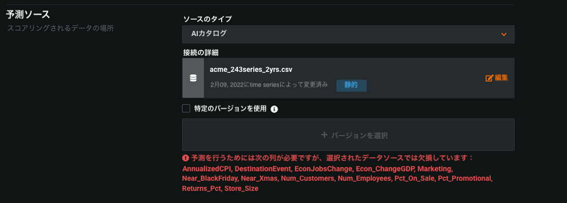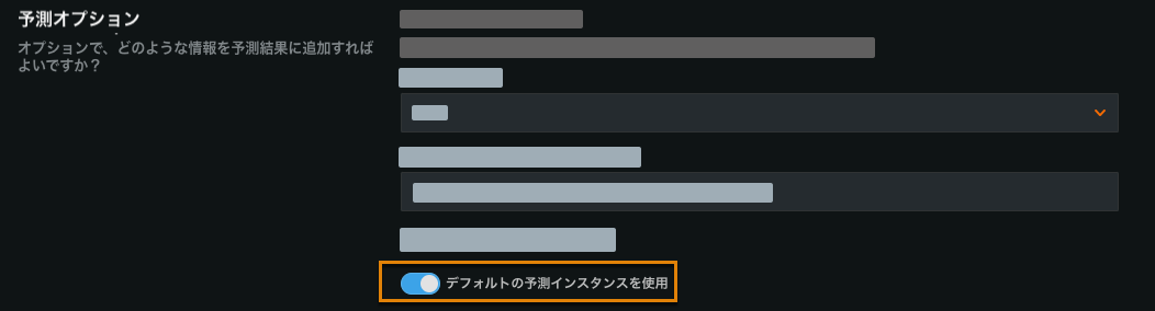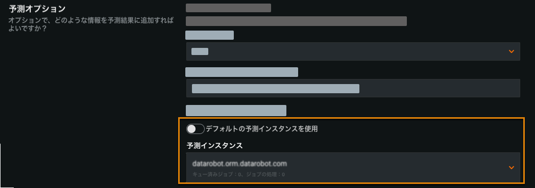トグルをオフにすると、別の予測インスタンスを選択できます。