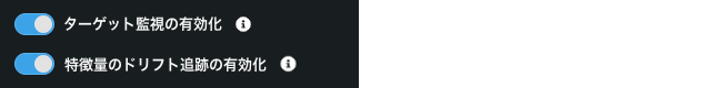 データドリフト、精度、公平性の監視をよりきめ細かく制御するために、 デプロイの設定 >データタブのデータドリフト追跡を有効にする設定が2つの設定に分割されました:ターゲット監視の有効化と特徴量ドリフト追跡の有効化です。