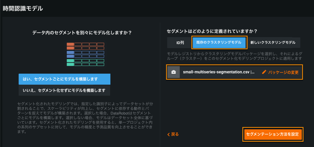 必要な機能フラグ:時系列のクラスタリングからセグメンテーションのフローを有効にする