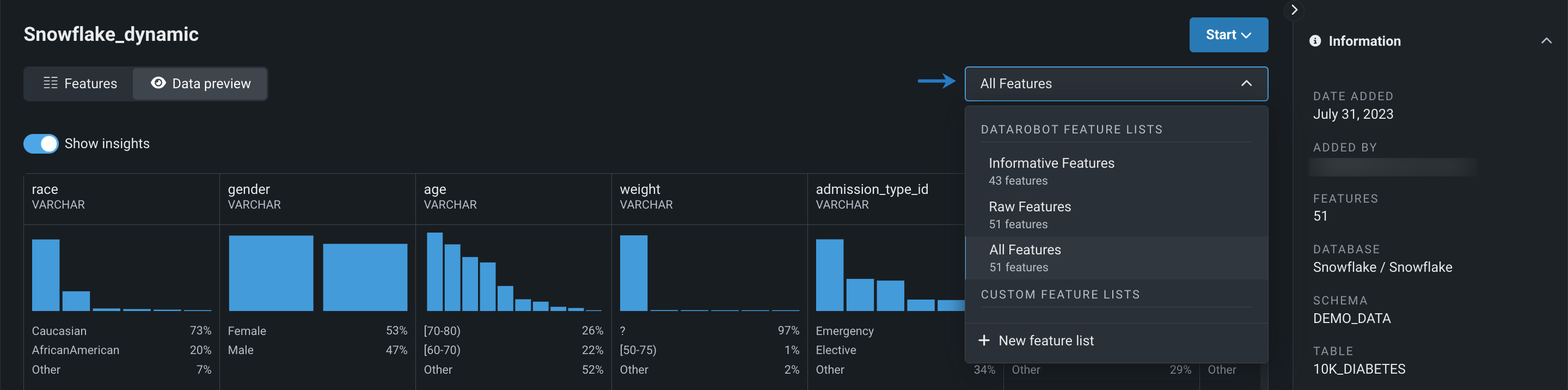 ワークベンチのユースケースに登録されたデータセットを探索しながら、 カスタム特徴量セットを表示および作成 できるようになりました。